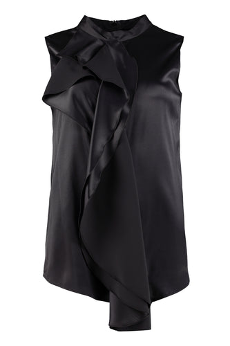 Blusa in raso di seta con volant