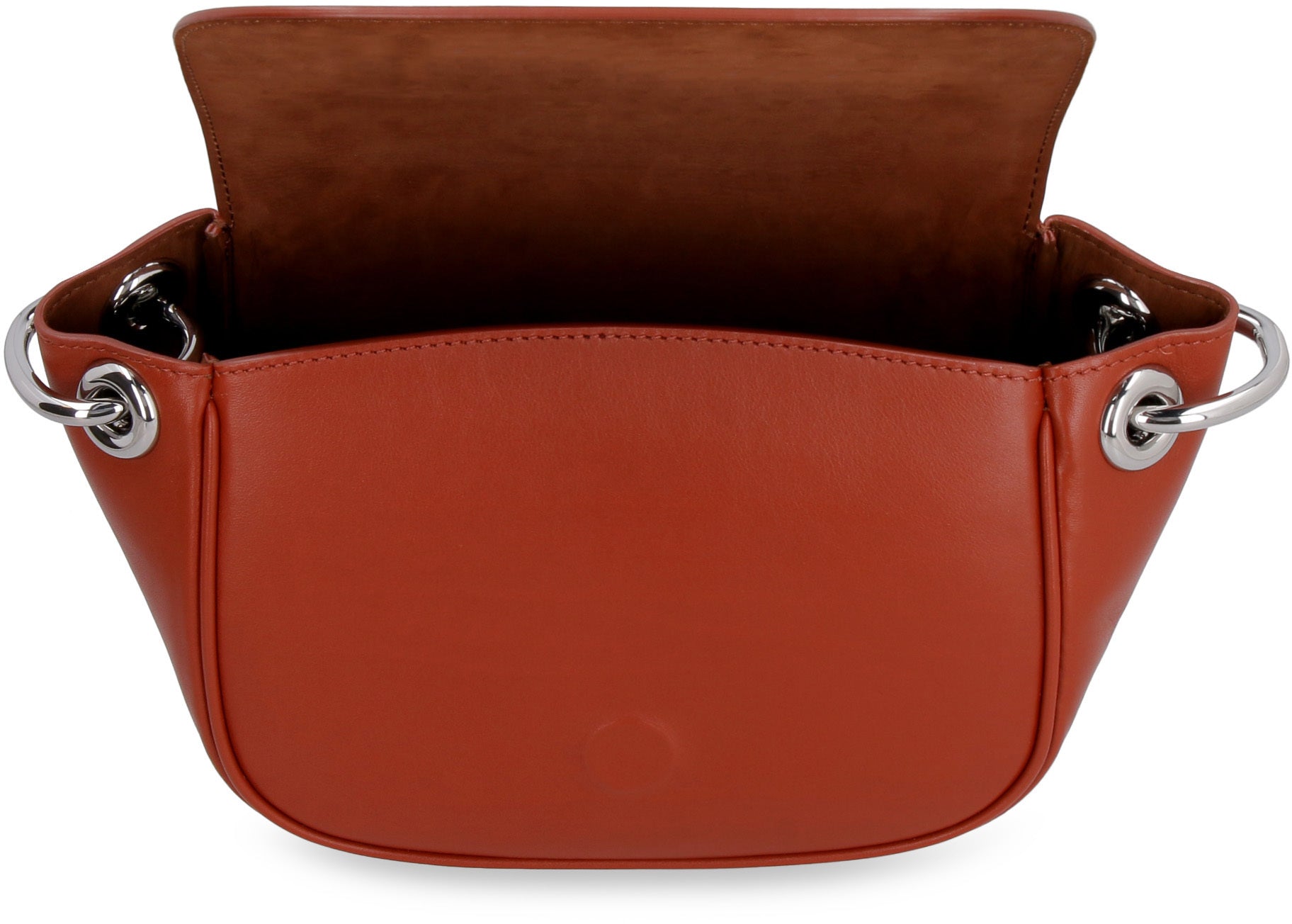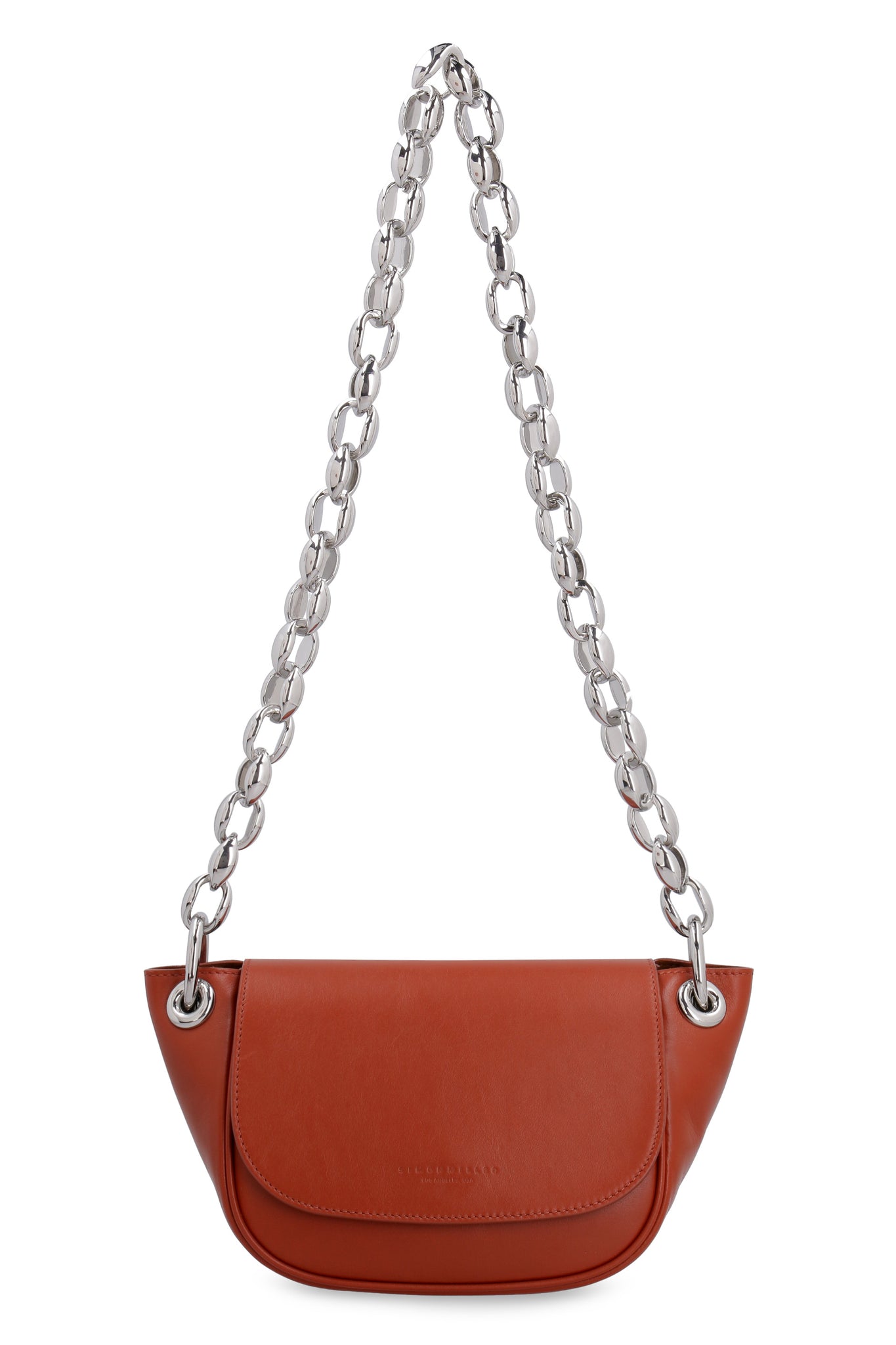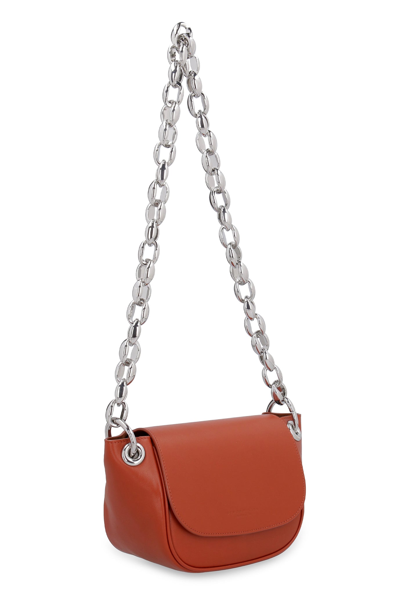 Modello in pelle liscia Patta con chiusura magnetica Fodera in suede Tracolla a catena Hardware in metallo argentato Larghezza: 28,5 cm Altezza: 16 cm Profondità: 11 cm Tracolla: 65 cm 100% Pelle Bovina